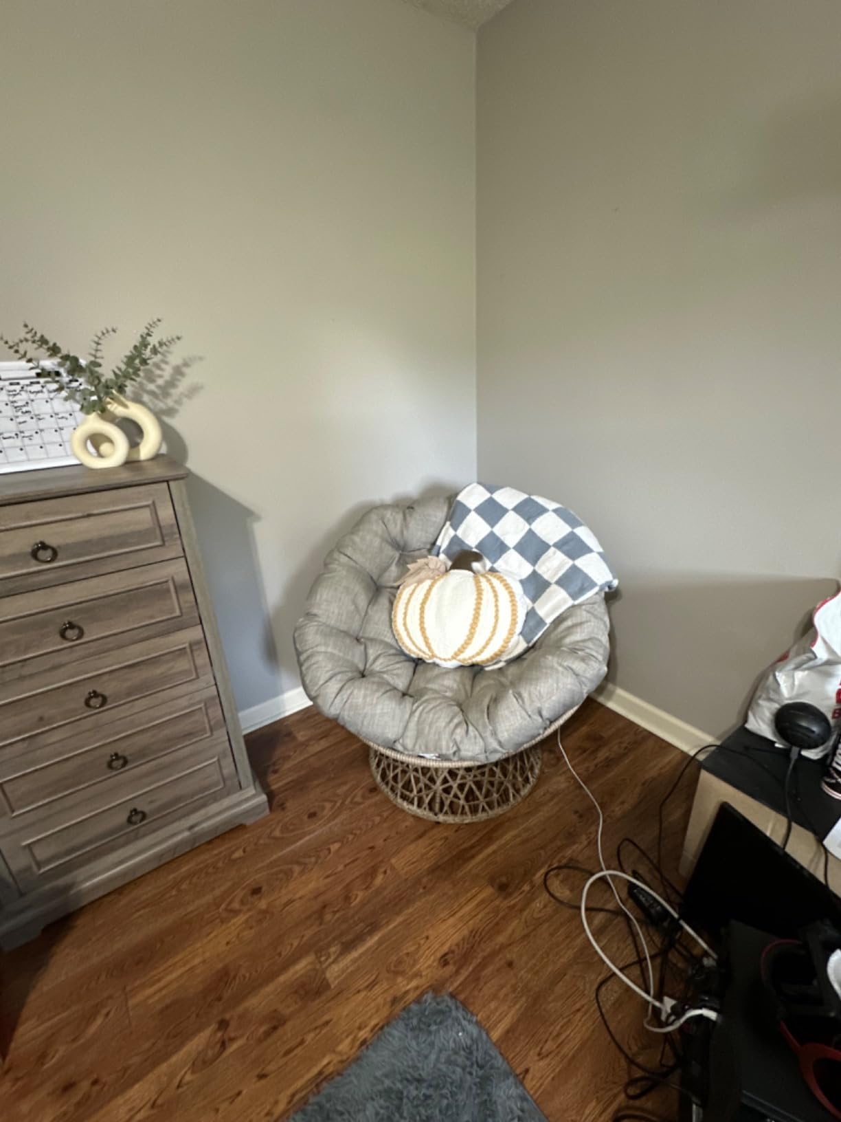 The first time I sat in a Papasan chair I loved it and got a great nap, I was sold. Only thing I did not like was the ease of tipping over lmao. So this one is perfect for me, you can still tip if you’re reckless but this one is sturdier than a traditional Papasan chair in my opinion. Everyone loves it including my kitty! You do have to occasionally fluff the cushion.