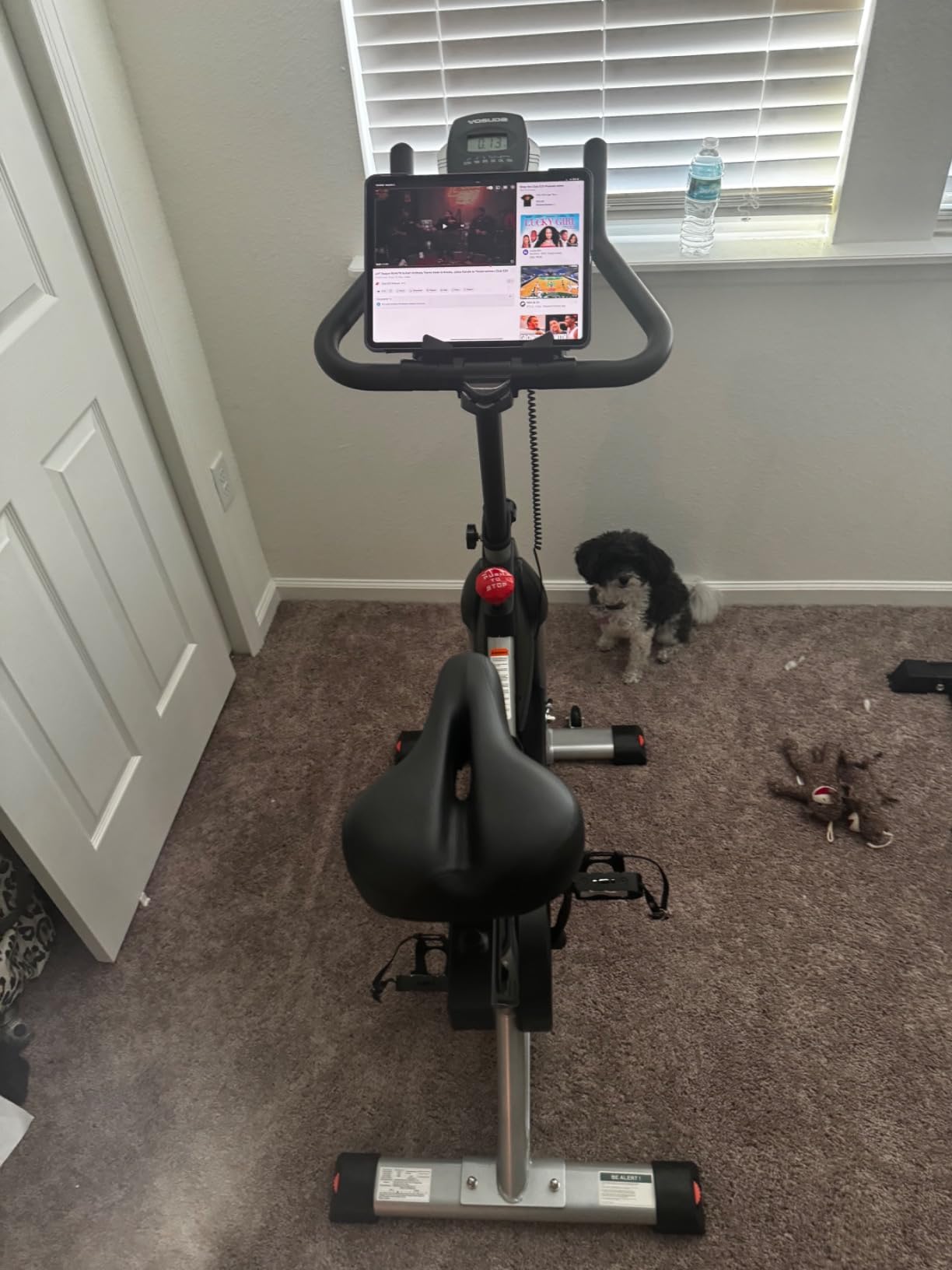 - LCD Monitor and Tablet Mount: The LCD monitor on the exercise bike tracks your pulse, time, speed, distance, calories burned, and odometer. The gift Tablet holder allows you to enjoy riding and music at the same time, making it easier to keep your workout